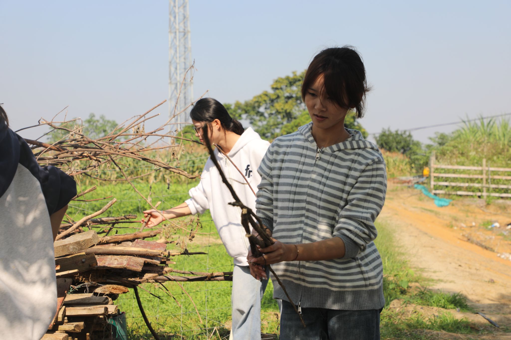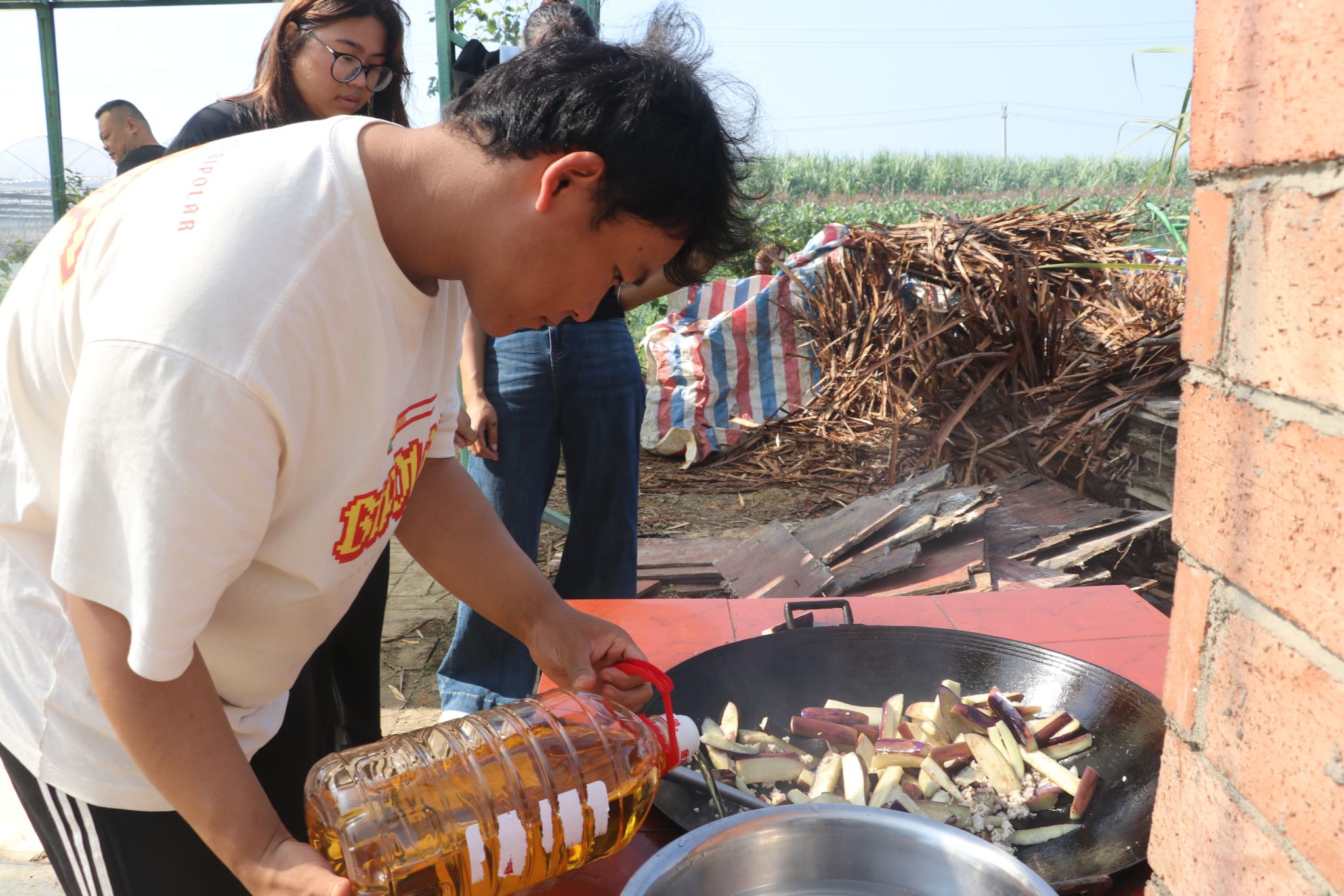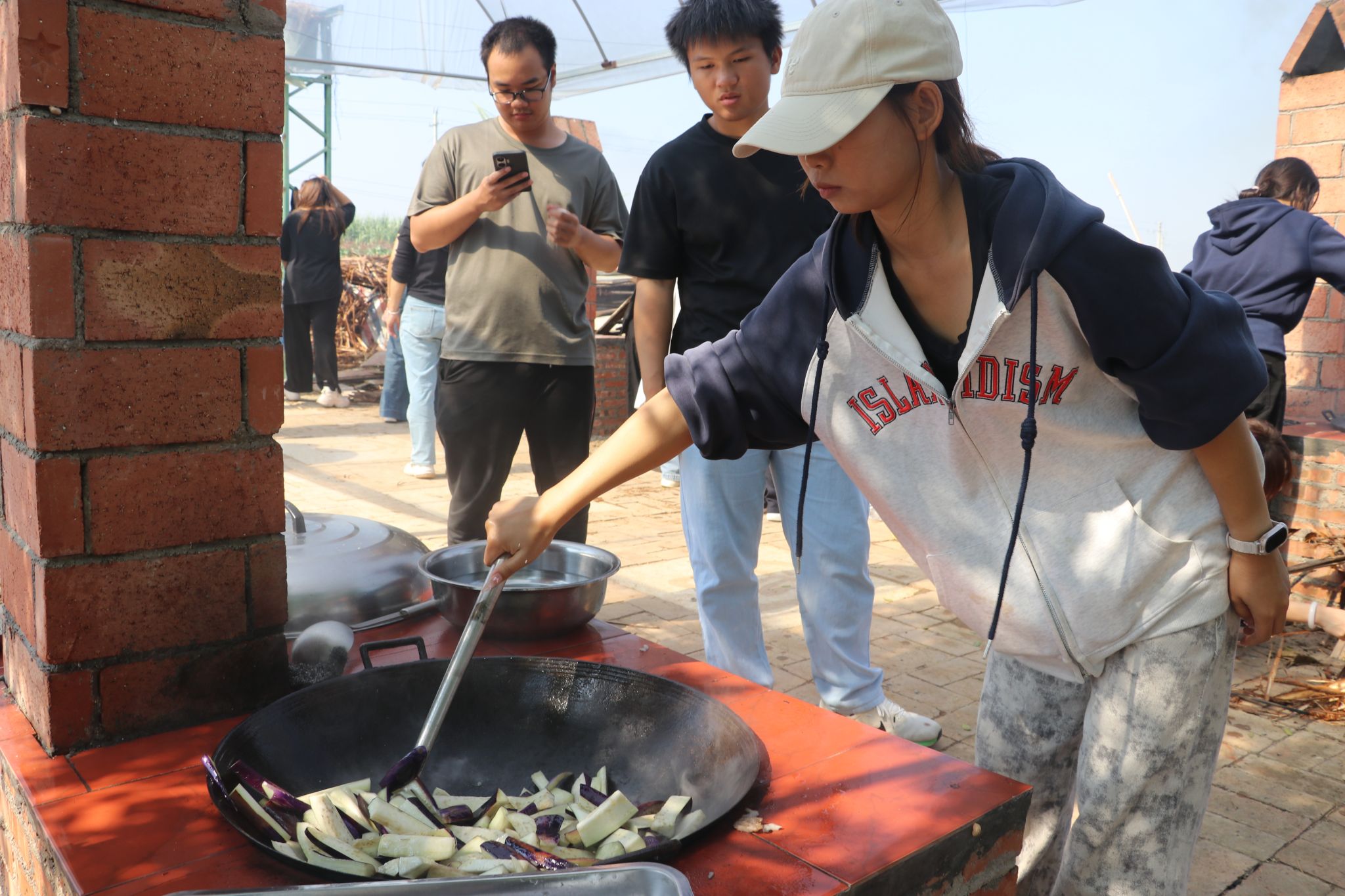 实践环节更是精彩纷呈。学生们了解了土窑烤制的悠久历史后,接着在“传统土窑烤制技艺体验”中,同学们分组协作,从搭窑、捡柴到控温、密封,亲手烤制出香气四溢的红薯与烤鸡。炊烟袅袅间,古老的智慧与青春的活力交织共鸣。随后的野餐烹饪,大家清洗食材、调制风味,在协作分享中深化了对“一粥一饭当思来之不易”的体悟。