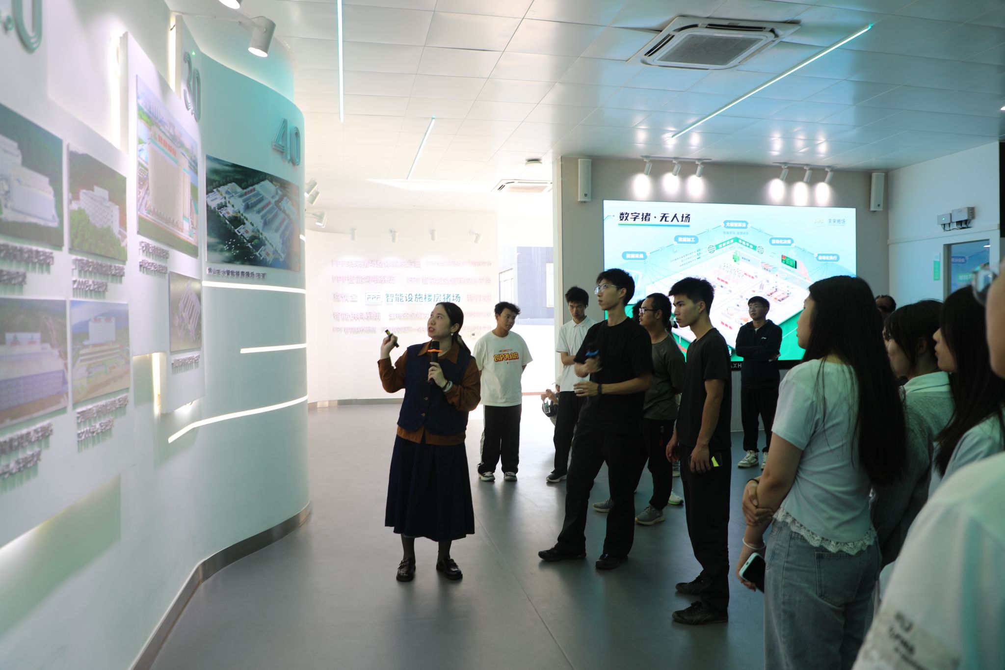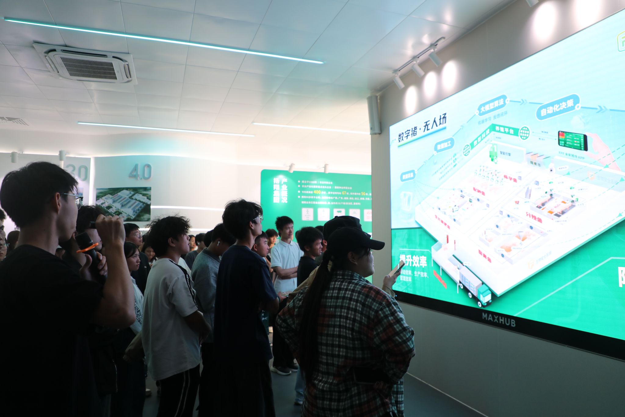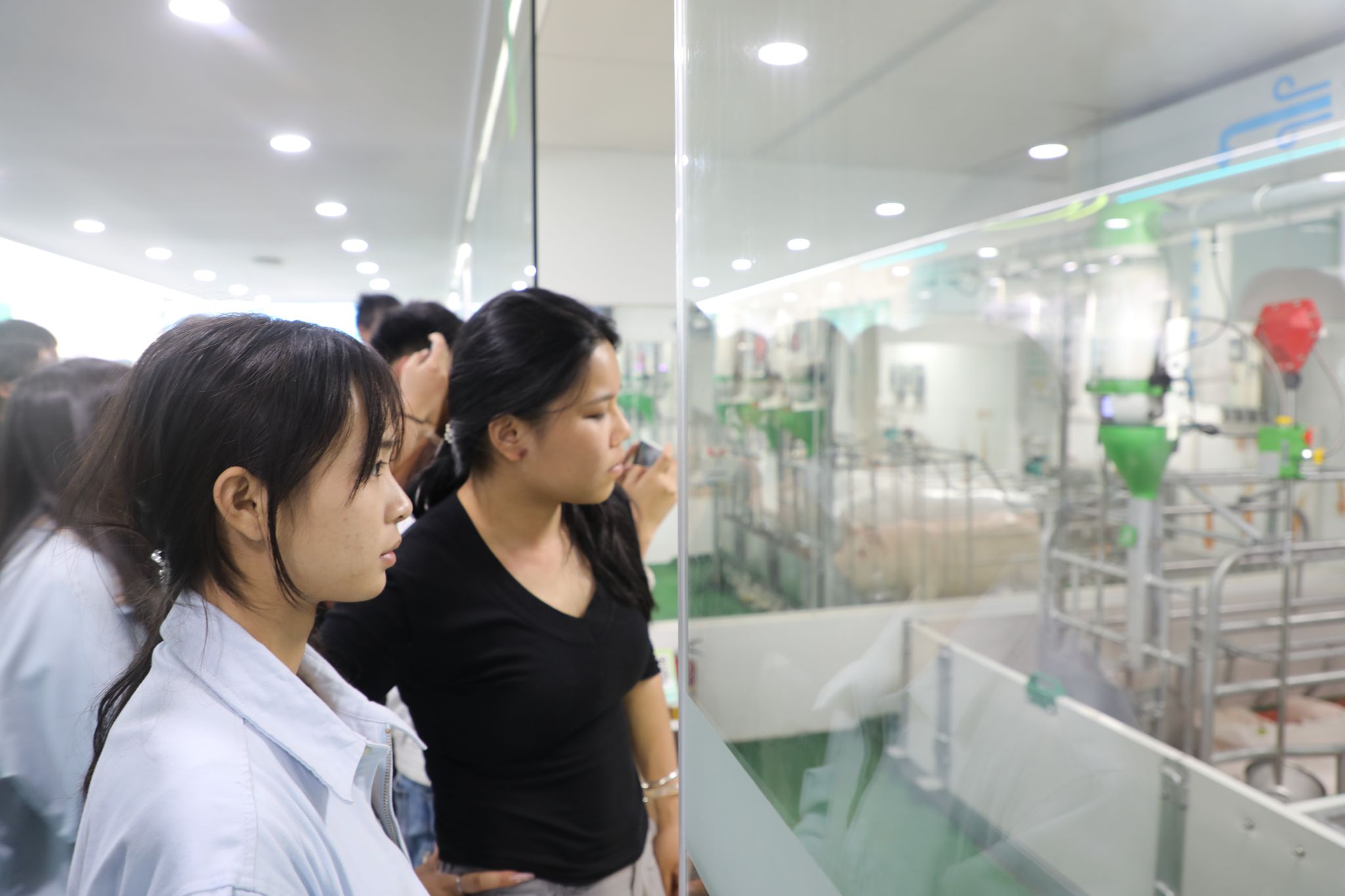 午后,师生们转场至广西扬翔股份有限公司,开启一场“科技赋能农业”的探索之旅。在“智慧猪场”的参观环节,同学们亲眼见证了物联网、大数据、人工智能如何深度赋能传统养殖:环境自动调控、精准饲喂系统、生物安全防控体系等一系列现代化设施,彻底颠覆了大家对“养猪”的固有印象。尤为引人入胜的是关于“猪的一生”的系统讲解,从基因选育、智能分娩、健康保育到高效育肥,每一个生命阶段都体现了对动物福利、生产效率与食品安全的极致追求,让同学们对科技驱动下的现代农业产生了由衷的敬佩。