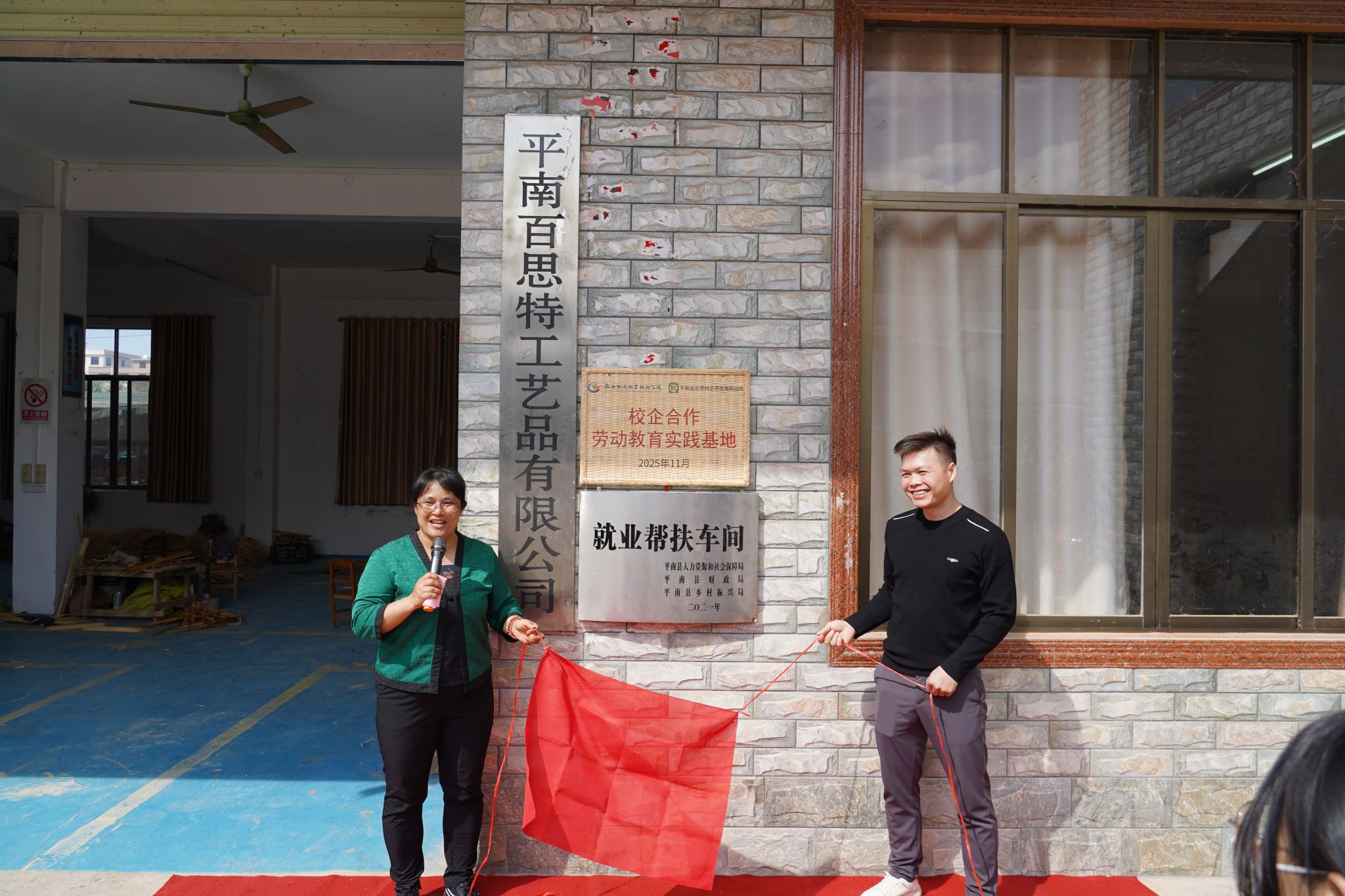 时值孟冬,煦阳暖心。2025年11月16日,50多名广西物流职业学院师生代表,走进平山百思特山里文化研学基地,成功举行“校企合作劳动教育实践基地”揭牌仪式,并开展一场以“探寻山里文化,劳动砺能育人”为主题的沉浸式劳动教育实践活动。在历史文化传承与非遗手作体验中,开启了一堂生动而深刻的育人课程。