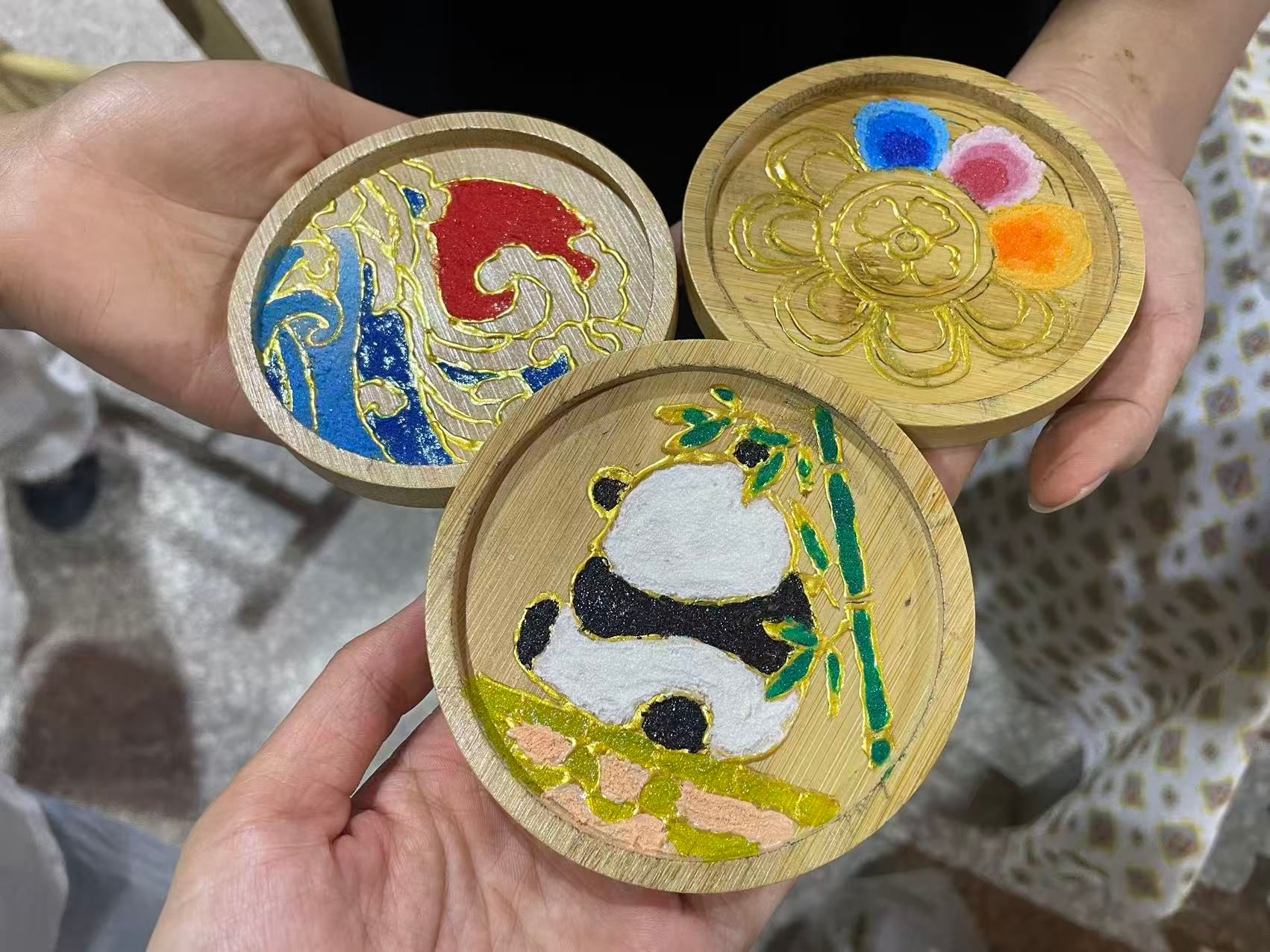 在平南山里文化研学基地,学生们沉浸于三项富有特色的非遗手工艺实践。在珐琅杯垫制作中,同学们细心掐丝、精心点蓝,于方寸之间体悟传统工艺的严谨与精美;在蜡染艺术体验中,大家以蜡为墨,以布为纸,在点蜡、浸染、脱蜡的过程中感受民间智慧的深邃与蓝白之美;在“一碗莲”甜品制作环节,同学们巧手处理食材,用心拼制造型,在烟火氤氲中领会中华饮食文化的精粹。一系列非遗体验,不仅锻炼了学生的动手能力,更深化了其对传统文化的认同与自信。